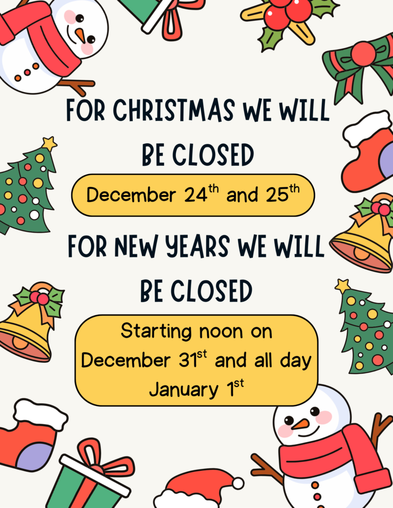 CLOSED FOR THANKSGIVING 11/27-11/29